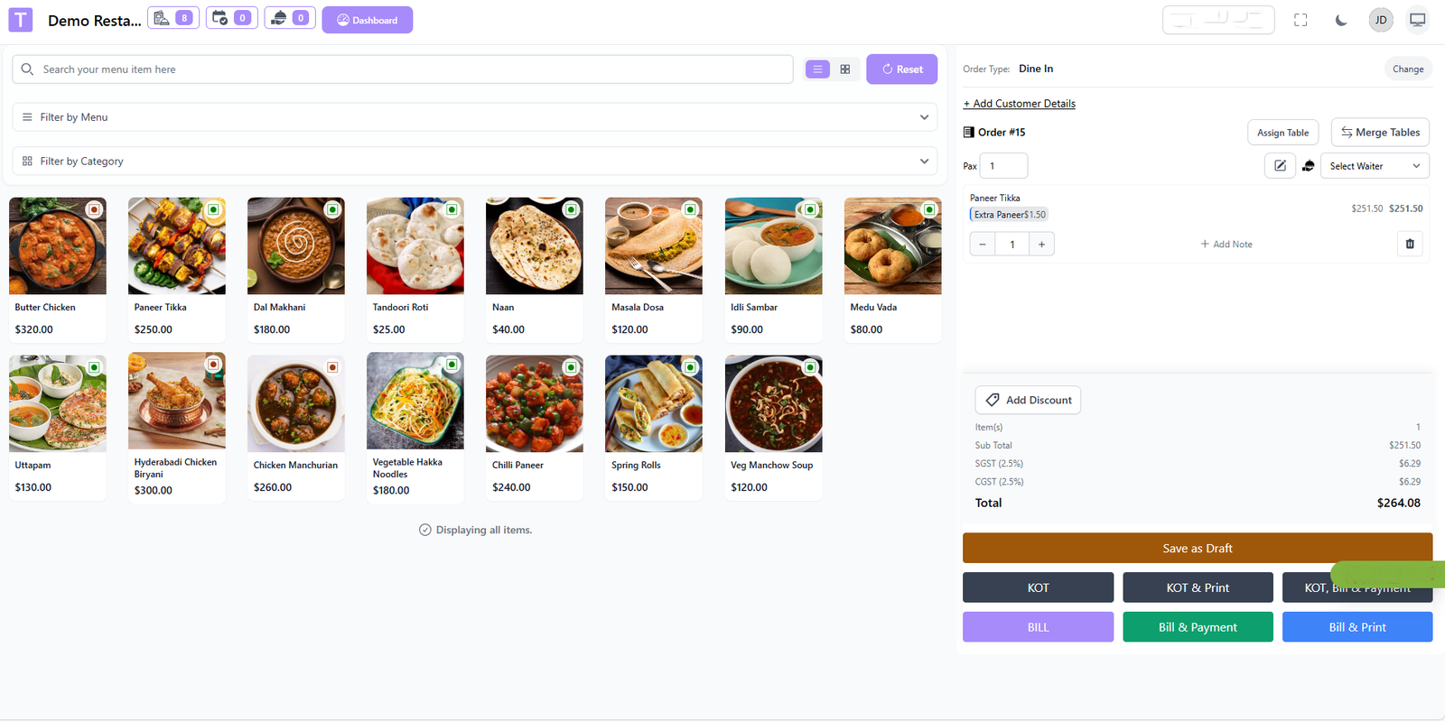 Kitchen Order Tickets (KOT)